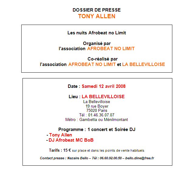 Afrobeat No Limit et La Bellevilloise présentent: Tony Allen