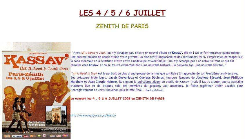 Concerts: Kassav' / Moun Karayib / Lynnsha / Slaï / Yvan Voice / DD St Prixi / Biloute