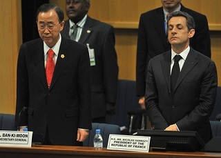 Nicolas Sarkozy et Ban Ki Moon à l'ouverture du sommet de l'Union Africaine à Addis Abeba le 30 janvier 2011