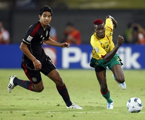 Le Camerounais Ambroise Oyongo face au mexicain Diego de Buen en 8ème de finales de la coupe du monde junior le 8/8/2011