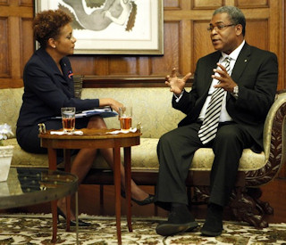 Michaëlle Jean et le premier ministre haïtien Jean-Max Bellerive le 25 janvier 2010 à Ottawa