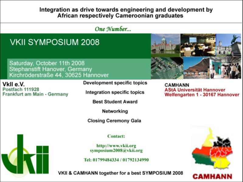 ENVOYER VOS CANDIDATURES, N'HESITEZ PAS, EN PLUS DES PRIX QUI SERONT REMIS, VOUS AVEZ LA POSSIBILITE DE BÂTIR UN RÉSEAU RELATIONNEL QUI VOUS SERA NATURELLEMENT PROFITABLE. Les heureux lauréats de l'année dernière vous entretiendront dans notre prochaine newsletter: inscrivez vous pour recevoir le newletter à www.vkii.org.