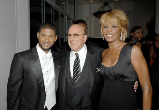 Whitney Houston en compagnie son producteur Clive Davis et de Usher
