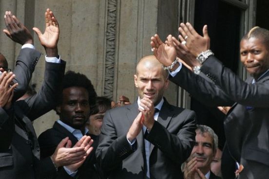 Zidane et Djibril Cissé lors de la réception à l'Elysée après la coupe du monde