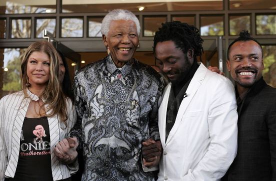 Les Black Eyed Peas en compagnie de Nelson Mandela en juin 2006-