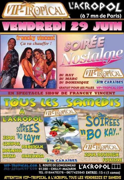 Vendredi 29 Juin à l'Acropol, Francky Vincent sera présent.
