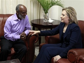 Hillary Clinton et René Preval au palais présidentiel le 30 janvier 2011 | ||||||||||||||||||||||||||||||||||||||||||||||||||||||||||||
