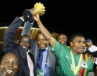 Christopher Katongo, le capitaine zambien , avec Kalusha Bwalya (2ème à partir de la droite) président de la fédération | ||||||||||||