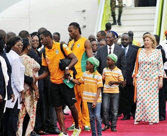 Les éléphants de Côte d'Ivoire de retour à Abidjan le lundi 13 février 2012 | ||||||||||||
