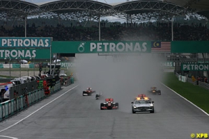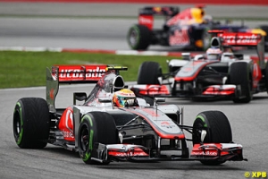| Comme au grand prix d'Australie, Lewis Hamilton a signé le temps le plus rapide des qualifications. Comme en Australie, il a devancé son coéquipier Jenson Button. Si les qualifications se sont déroulées par temps chaud, la piste était trempée au départ. La fédération a préféré un lancement derrière la voiture de sécurité. Contrairement à la course précédente, Lewis a pu conserver sa première place et mener les premiers tours de la course. Contraint, comme ses principaux concurrents, à changer de pneus pluie au 6è tour, Lewis a bien négocié cette première salve de ravitaillements. Comme souvent en Malaisie, la pluie est revenue, et la fédération a préféré stopper la course 30 minutes le temps que la pluie s'arrête. Lewis a su gérer correctement ce troisème départ derrière la voiture de sécurité, et conserver encore la tête de la course. Les choses se sont gâtées pour lui lorsque la piste s'est mise à sécher. Son arrêt aux stands s'est mal passé pour deux raisons. D'abord parce que son écurie a exécuté son arrêt très lentement. | ||||||||||||