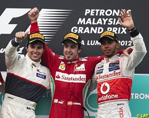 | Contrairement à l'Australie il semblait plus content de sa troisième place. Certainement parce que ses deux principaux rivaux (Jenson Button et Sebastian Vettel) n'ont marqué aucun point. Il est certes devancé par le vainqueur du jour, Alonso, mais la monoplace de ce dernier n'est a priori pas suffisamment performante pour lui permettre de jouer le titre. Nouveau clin d'oeil à son excellente saison 2007: Hamilton avait aussi fini ce grand prix de Malaisie à la même troisième place. Au delà de ce cliché, avec deux pole-positions, le pilote anglais peut être satisfait d'avoir une voiture extrêmement performante. En 2010/2011 sa voiture n'était pas suffisamment rapide pour lui permettre de jouer le titre. La formule 1 reprend ses droits dans trois semaines, avec le Grand Prix de Chine. | ||||||||||||