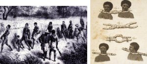 ![]() convoi d'esclaves, 19ème siècle et esclaves entravés par le bois "mayombé" | ||||||||||||