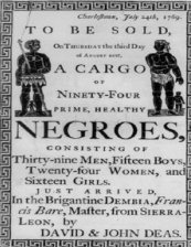 ![]() Affiche d’une vente de nouveaux Africains Charleston, Caroline du sud, 1769 | ||||||||||||