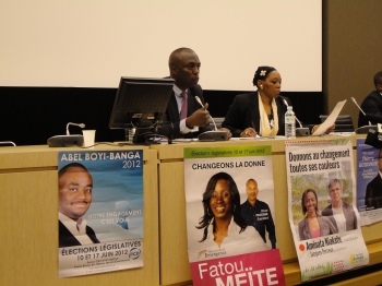 Les affiches des candidats Abel Boyi Banga, Fatou Meite (mouvement emergence), Amina Niakate (Europe Ecologie les Verts)